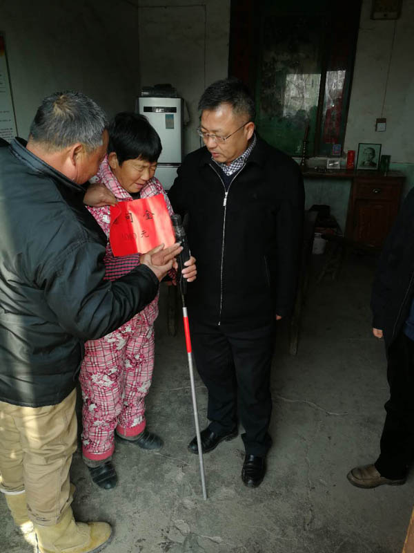 王献余一行先后来到于洼社区、叶营村和汊北村,走访慰问困难党员杨德芳、盛家富,困难群众杨文举、胡长红,困难残疾人方锦泰,为他们送去慰问金,并向他们致以节日的问候和良好的祝愿。