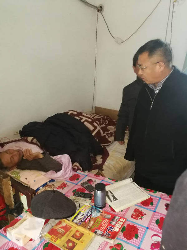 困难群众杨文举,2015年患胃癌住院手术,目前仍在治疗中,其妻患肺心病等多种疾病,儿子入赘在东北黑龙江,家庭缺乏劳动力,除几亩田的收入外无其它经济来源,生活十分困难。王献余鼓励他们要保持乐观的生活态度,积极面对困难,树立战胜病魔、困难的勇气和信心。王献余还细心嘱咐随行镇上、村上领导要时刻关心他们的生产生活,让他们切实感受到党和政府的关怀。