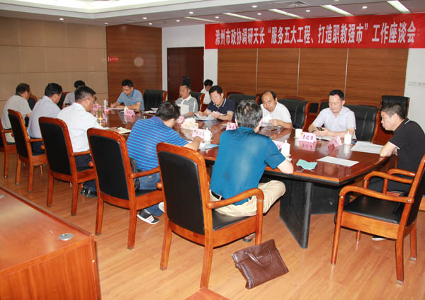 8月2日,滁州市政协副主席高怀忠一行来我市调研“服务五大发展、打造职教强市”工作。天长市政协主席王献余、政府副市长周巧玲,市政协副主席卢金堂陪同调研。